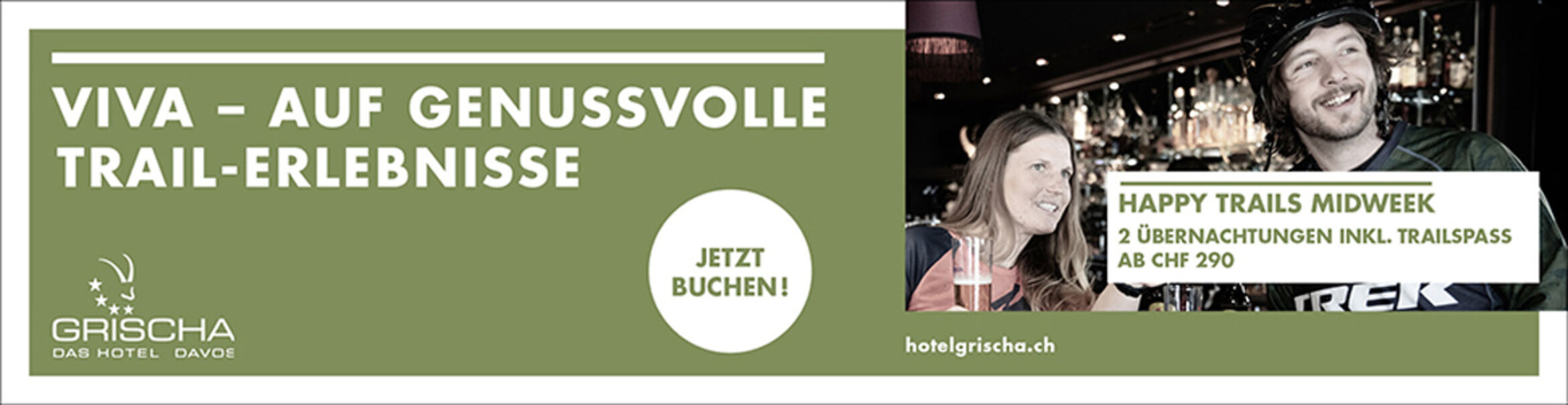Das Grischa kennt die Bedürfnisse seiner sportlichen Gäste und bietet darum nicht nur ausgezeichnete Services an, sondern auch eine ganze Reihe an attraktiven Pauschalangeboten und Packages. Zum Beispiel das «Happy Trails Midweek»-Angebot für alle, die unter der Woche abdüsen können. Oder die «GRISCHA Trail Days», die jeweils am Freitag und Samstag stattfinden und wo dich Bike-Guides auf professionell geführte Touren mitnehmen. Und speziell für Frauen gibt es das «Enduro Camp Ladies only». Am besten informierst du dich auf der Website und buchst deine flowigen Trail-Erlebnisse direkt online: www.hotelgrischa.ch